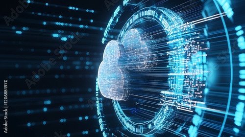 Digital Cloud Technology Concept with Data Streams and Particles in a Futuristic Environment