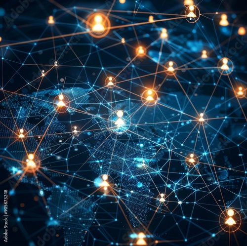 Digital Connection: An Illustration of a Global Network of People Linked by Technology, Representing the Unifying Power of the Internet Across Continents and Cultures.