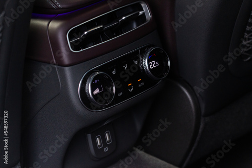 Digital control panel car air conditioner dashboard. Modern car interior conditioning buttons inside a car close up view.