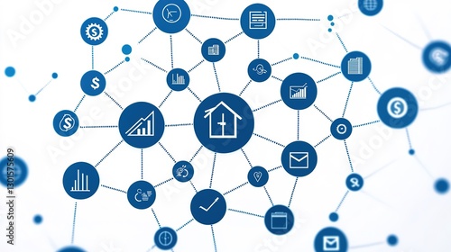 Digital currency trends interconnected finance icons in a professional graphic design workspace