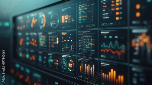 Digital dashboard displaying real time data analytics with graphs and metrics. vibrant colors enhance visual appeal and clarity
