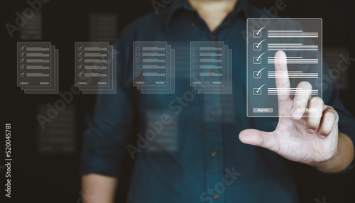 Digital data management online, People touching data on visual screen, Technology data network online.