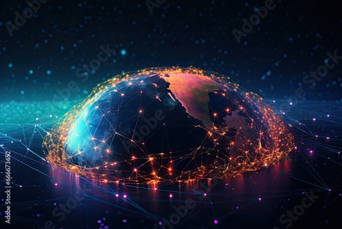 Digital data network connection on Earth. Global communication and technology concept. Generative AI