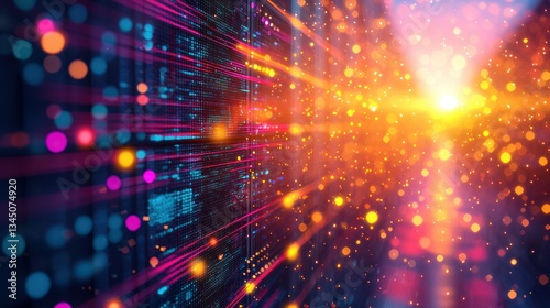 Digital Data streams, bright light, abstract digital lines and bokeh