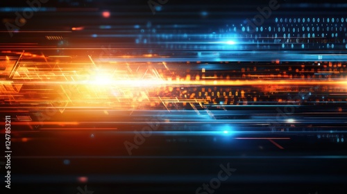 Digital data streams flow across a dark cyber background, depicting fast internet speed for tech websites