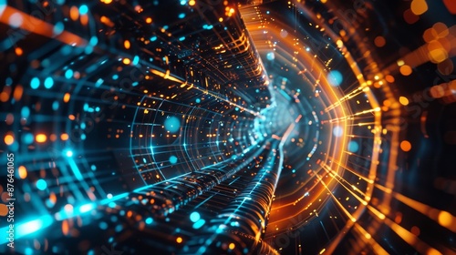Digital Data Symphony Glowing Lights in a Technological Tunnel HighTech Innovation and Futuristic Design Concept Captured with Nikon D850 35mm Lens for Sharp Detail