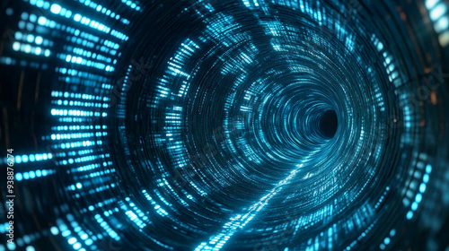 "Digital data tunnel illustrating the flow of information through a high-tech, futuristic network.