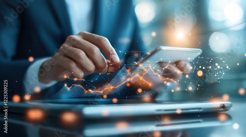 Digital Device in Professional Office Workspace with Data Analytics and Communication