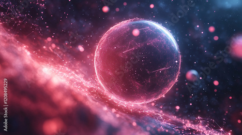 Digital diagram of a futuristic planet hologram symbolizing global fintech innovation minimalistic bright tone modern style blurred background with empty blank caption space dynamic concept