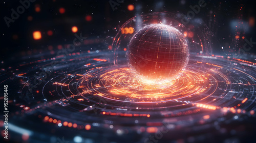 Digital Diagram with Planetary Hologram, Fintech Visualization,
