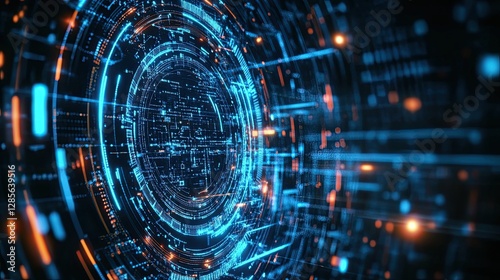 Digital digitalization concept with abstract icons and futuristic interfaces. --