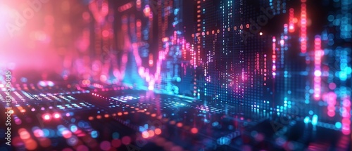 Digital display of financial data and stock market trends in a vibrant, futuristic design