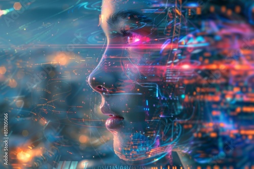 Digital Dreamscape: A Cybernetic Face. Generative AI