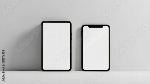 Digital Duo: Modern devices, a tablet and a smartphone with blank screens. Perfect for showcasing your designs and apps, reflecting the cutting edge of connectivity and communication.