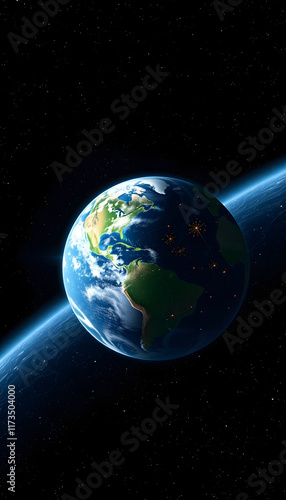 Digital dystopian globe, future, viewed from space, in the solar system, in the stars, view of the earth, our planet, ai, cyber, eco, climate, war created with technology, Backlit, with white tones