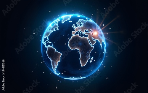 Digital Earth: A Glowing Sphere Representing Global Connectivity and Technology. High quality