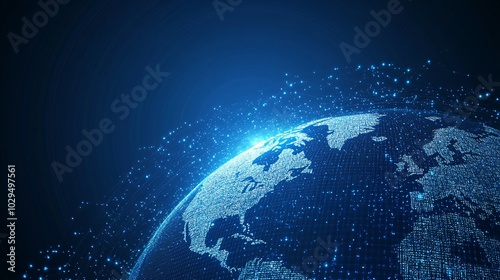 Digital Earth with Bright Blue Lights and Lines