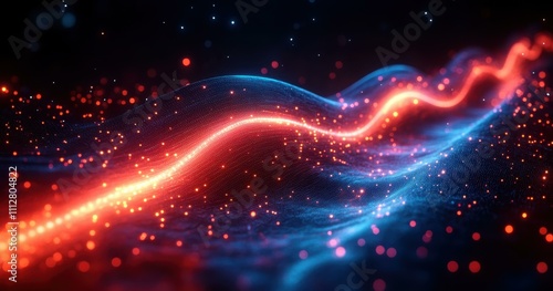 Digital Energy Flow. Abstract glowing light trails, dynamic wave motion in dark space, futuristic technology background perfect for digital media, innovation themes, science presentations with vibran