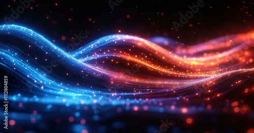 Digital Energy Waves. Abstract flowing neon light waves, digital energy motion effect for technology background, futuristic design, presentations, websites, digital art, vibrant blue and orange glowi