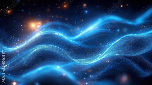 Digital Energy Waves in Futuristic Landscape with Ethereal Light Trails and Dynamic Motion