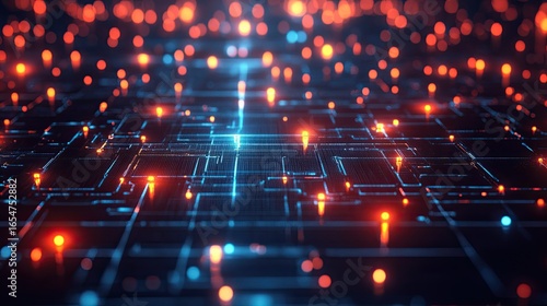 Digital Environment with Glowing Locks and Network Grid
