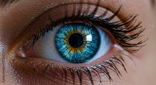 Digital Eye: Close-up of a Human Eye Reflecting Binary Code