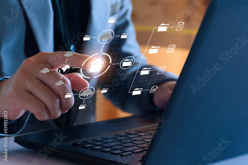 Digital file management concept. Businessman are accessing big data storage on Internet, Digital Storage, Cyber Security, Global Data Links, Digital Business, Files data, Internet of things.