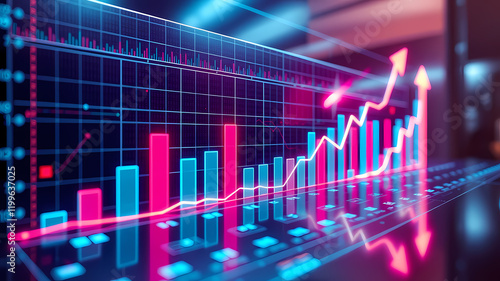 Digital financial chart with holographic bars and glowing trends