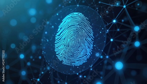 Digital fingerprint biometric verification illustration. Secure tech concept for digital identity, access control. Abstract graphic of data protection, cyber security. Futuristic tech art design.