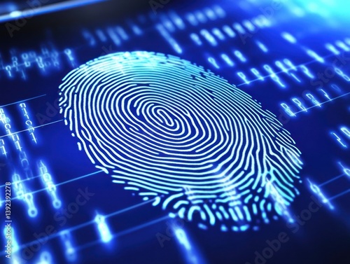 Digital fingerprint on a futuristic blue background with data