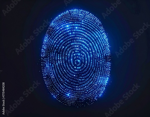 Digital fingerprint represented by glowing blue dots on dark backgroun