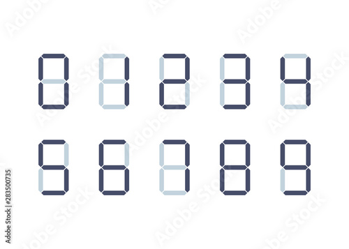 digital font numbers from 0 to 9 on white