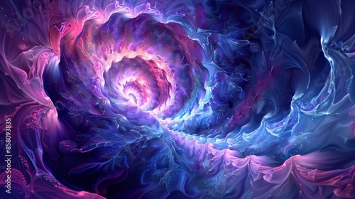 Digital fractal design, crinkle cut pulse, blue, pink, violet, abstract, high contrast, vibrant colors, intricate details, sharp focus, dynamic patterns, psychedelic