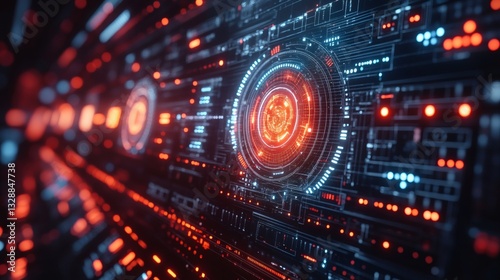 digital futuristic technology interface with intricate circuit board designs, illuminated in vibrant colors. This represents the cutting edge of innovation and the digital age