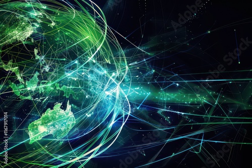 Digital Global Expansion with Electric Lines and Hues