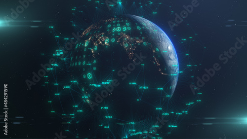 Digital global network connectivity Internet of things IOT cloud computing cybersecurity - Conceptual 3D Illustration Render
