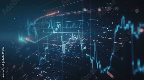Digital graph interface over dark blue background. Concept of stock market and financial success.
