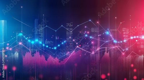 Digital graphs showing business growth and statistics, market trends, representing data visualization