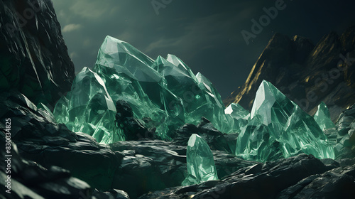 Digital green stone mountains abstract graphics poster background