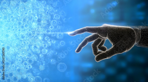Digital Hand Touching Blue Abstract Sphere in Futuristic Technology Photo
