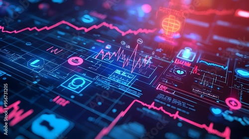 Digital Healthcare Economics Policy Analysis Represented by Charts and Icons