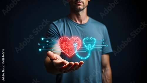 Digital Healthcare Heart hologram on hand