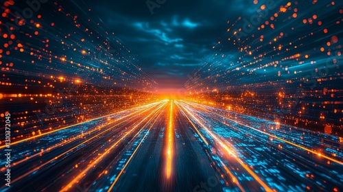 Digital Highway Of Light Streaks And Data Flow