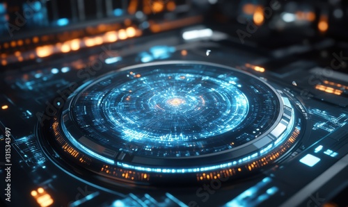 Digital holographic circles creating a dynamic, futuristic effect, symbolizing innovation and modern technology.
