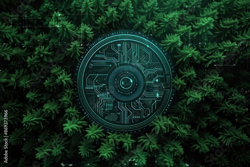 Digital HUD banner depicting deforestation impacts on climate with copy space