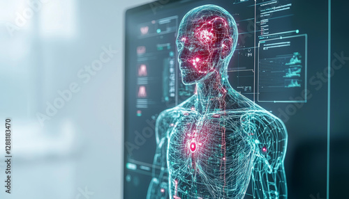 Digital human anatomy model with holographic display and data visualization