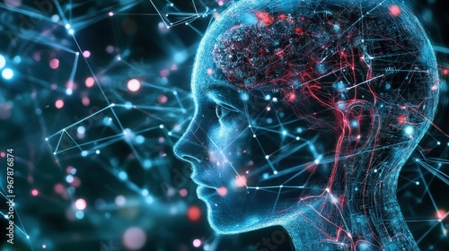 Digital Human Head with Network Connections and Glowing Lights