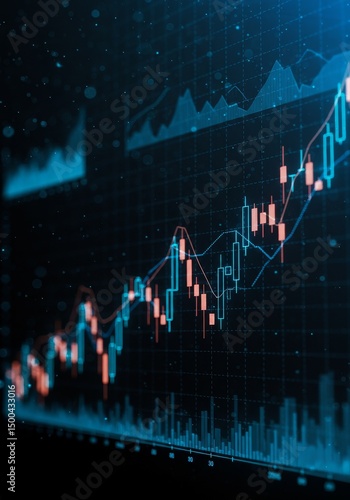 Digital Illustration of a Stock Market Chart with Blue and Red Lines