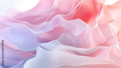 Digital illustration of flowing, gradient-colored fabric waves in pink, purple, and white.