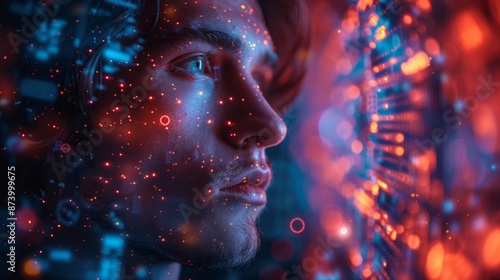 Digital Immersion: Futuristic Profile with Glowing Lights - Generative AI